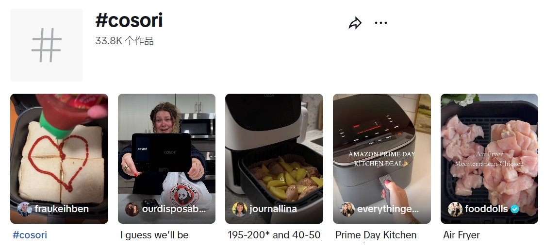 在TikTok上,#Cosori话题的浏览量高达2.2亿次 。