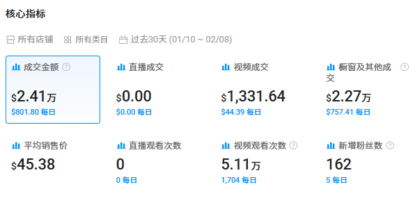例如,品牌账号@sweetcrispy_store粉丝仅257人,月流量也才5.11万,但销售额却达到了2.41万美元。