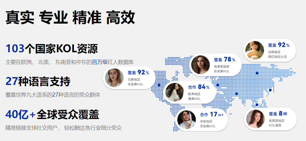 包括TikTok达人数量、覆盖国家和地区、语种支持、行业案例等,能否精准匹配品牌目标市场。