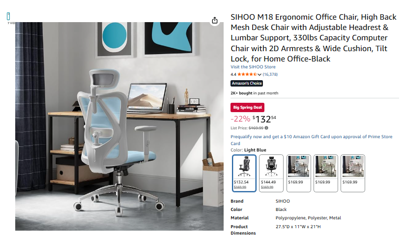 2018 年,SIHOO团队以尝试的心态,将M18人体工学椅定价近200美元,正式登陆了亚马逊美国站。