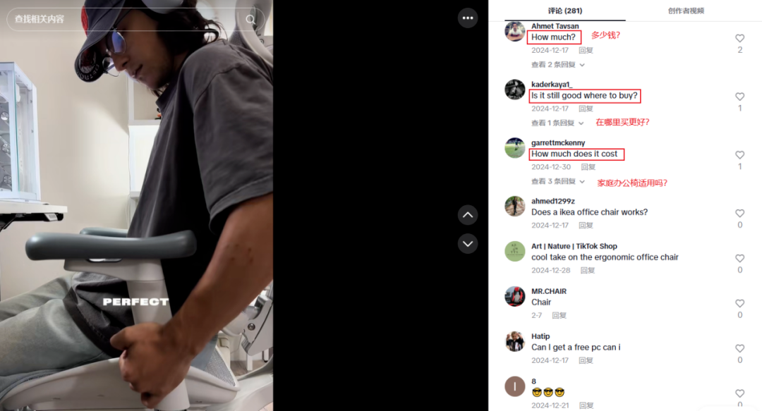 在TikTok上,SIHOO没有进行硬广轰炸,而是广泛联动海外各垂直领域的达人,特别是办公、电竞、家居类博主,鼓励他们创作真实的开箱、安装和长时间体验视频。