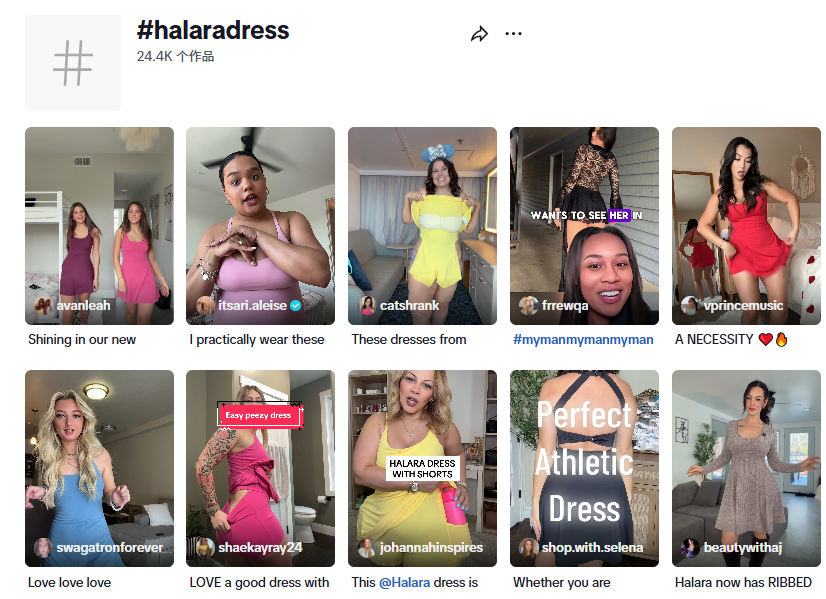 大家还记得那个靠一条裙子火遍全美的Halara吗?它的走红,恰恰印证了“内容种草”的威力。Halara没有一开始就疯狂投流叫卖,而是凭借一条内置短裤的口袋运动裙在TikTok上引爆了话题。这条裙子因为解决了女生出门不想带包、怕走光的真实痛点,吸引了大量真实用户自发分享试穿和搭配视频。