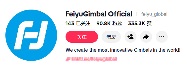 在TikTok上,FeiyuTech品牌建设了自己的官方账号@FeiyuGimbal Official,截止目前,粉丝量达到了9.08万、获赞量为33.53万。