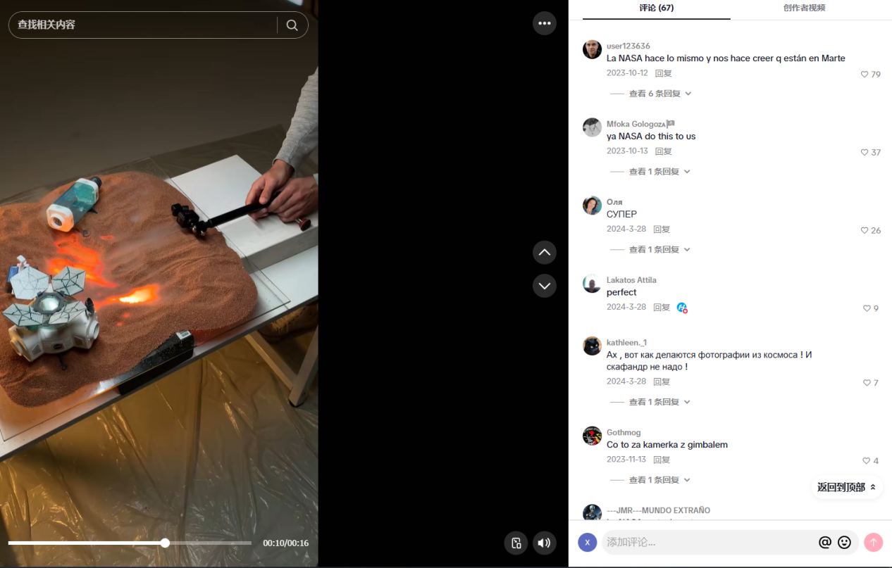 达人在视频里搭建了极具视觉冲击力的太空主题场景,全程使用FeiyuTech的手持稳定器来拍摄,从设备安装、参数调节到成片效果完整呈现,用趣味十足的创作形式吸引了大量用户围观。