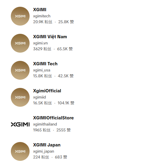 除官方核心主账号@XGIMI外,品牌还针对美国、越南、印尼、泰国、日本、新加坡、澳大利亚等重点海外市场,分别开设了本土化区域账号,精准适配不同地区的用户偏好。