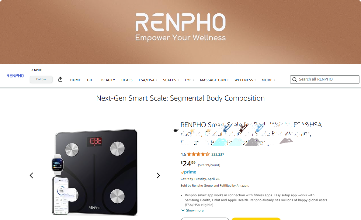 2016年品牌成立,2017年智能体脂秤就冲上了亚马逊Best Seller Rank榜单首位,单品月销量突破5万台,月营收超百万美元,拿下了Amazon's Choice标签。