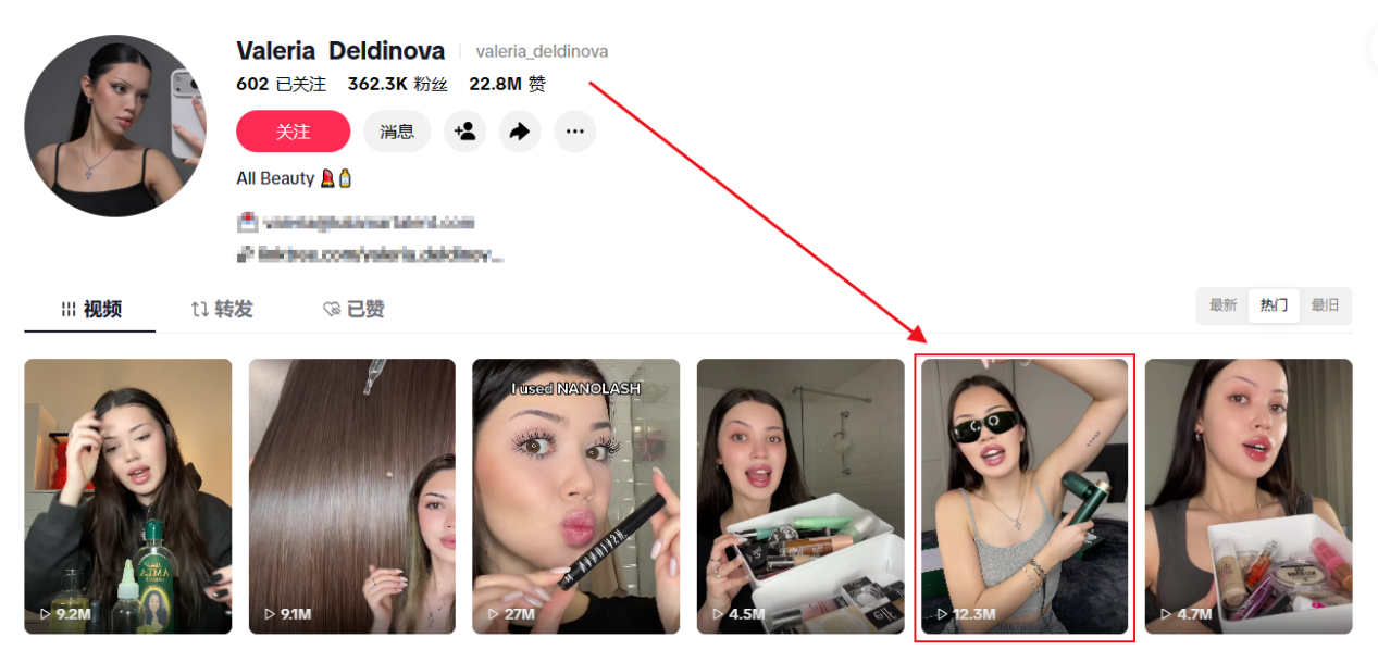 如拥有36.23万粉丝的TikTok美妆达人@Valeria Deldinova,就曾与JOVS品牌展开深度合作,产出了多条脱毛仪的实测种草短视频。