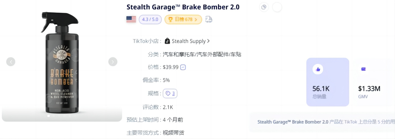有数据显示,自TikTok Shop在美区上线以来,其日GMV已经达到1400万美元。黑五大促期间,日GMV甚至突破3000万美元大关,引得无数品牌趋之若鹜,入驻TikTok Shop美区,汽车护理品牌Stealth Supply便在此列。