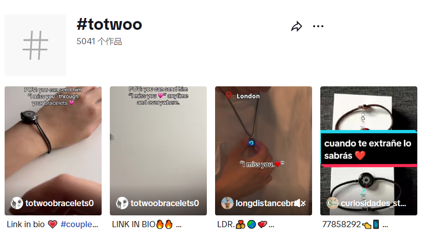 目前,Totwoo的品牌标签 #totwoo在TikTok上已有5041个作品。