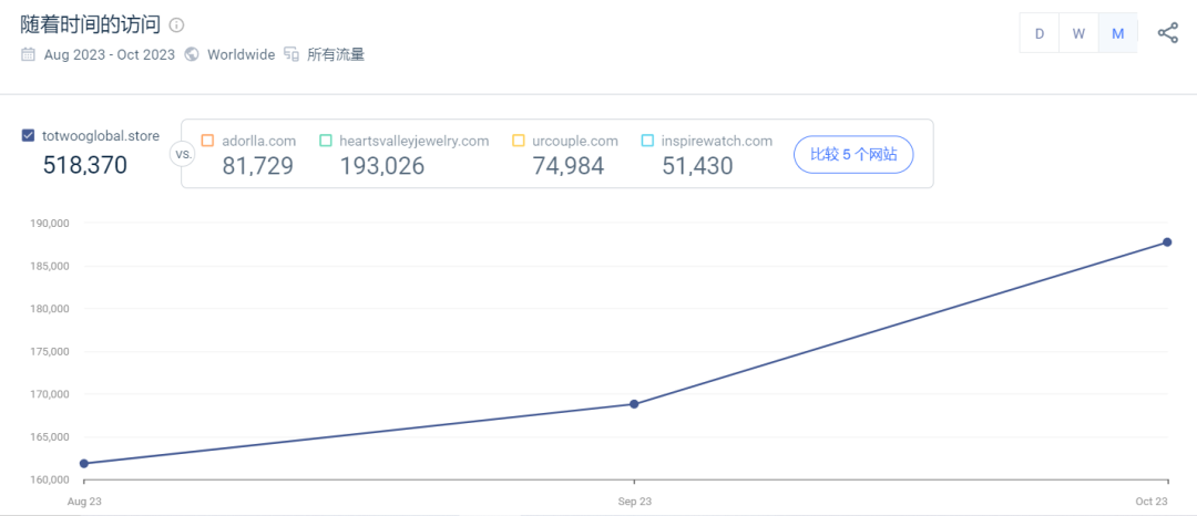 再加上后期各大社交平台的资源整合,Totwoo独立站的访问量也水涨船高。