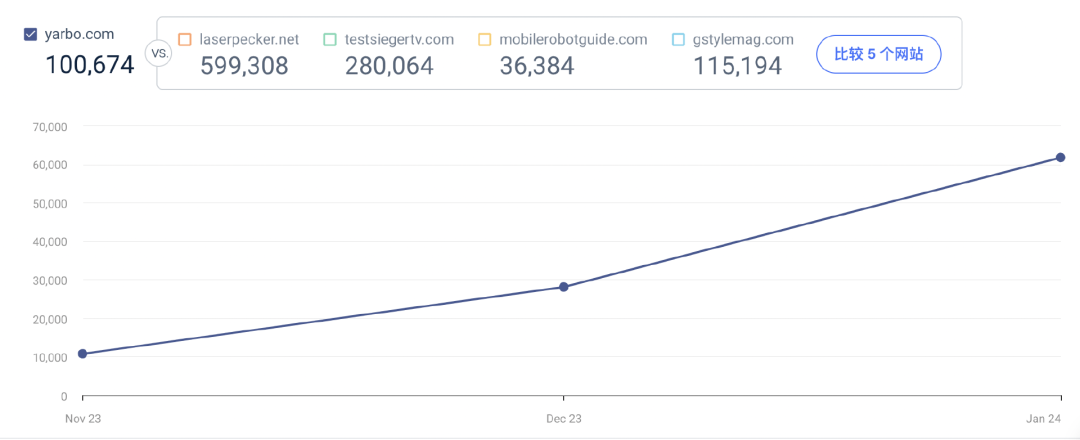 Yarbo独立站流量持续上涨 图源:similarweb