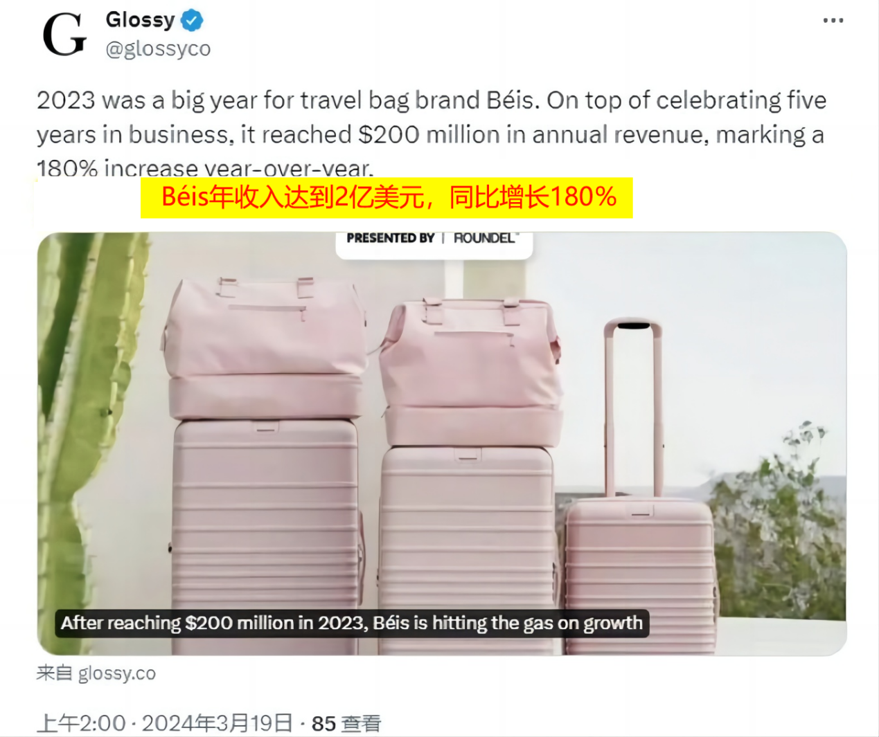 近日,DTC品牌Béis宣布,其2023年年收入已突破2亿美金,同比增长180%,这一消息一经发布,迅速在行业内引发轰动。