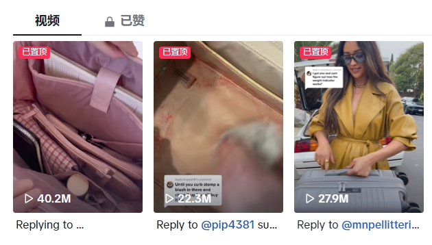 而Instagram和TikTok作为年轻人的聚集地,自然就成了Béis营销的重要阵地。目前,Béis在Instagram上已拥有超100万粉丝,并保持着活跃的互动状态。TikTok尽管入驻时间较晚,但截至目前也迅速积累了接近40万的粉丝,收获730万的点赞,且每一条视频的最低播放量都在1万以上,置顶的三条视频播放量甚至超过了2000万!