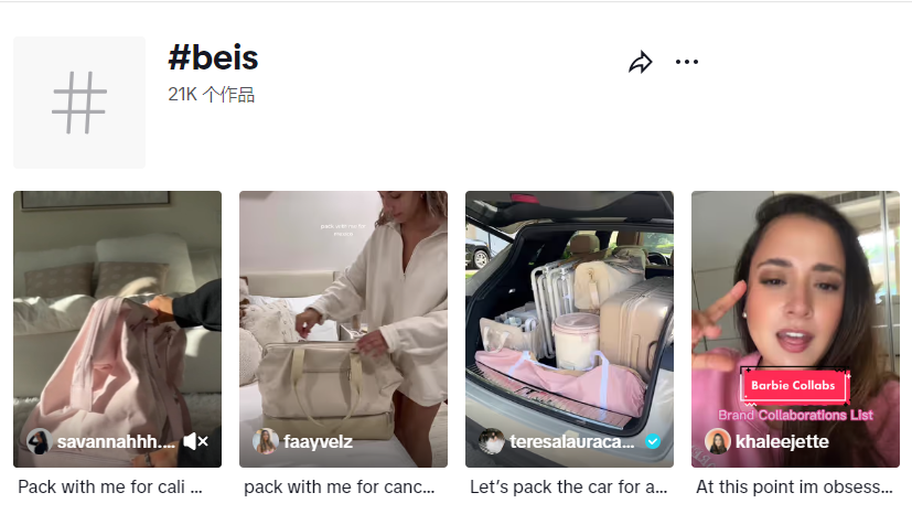 Béis在TikTok的话题视频 图源:TikTok