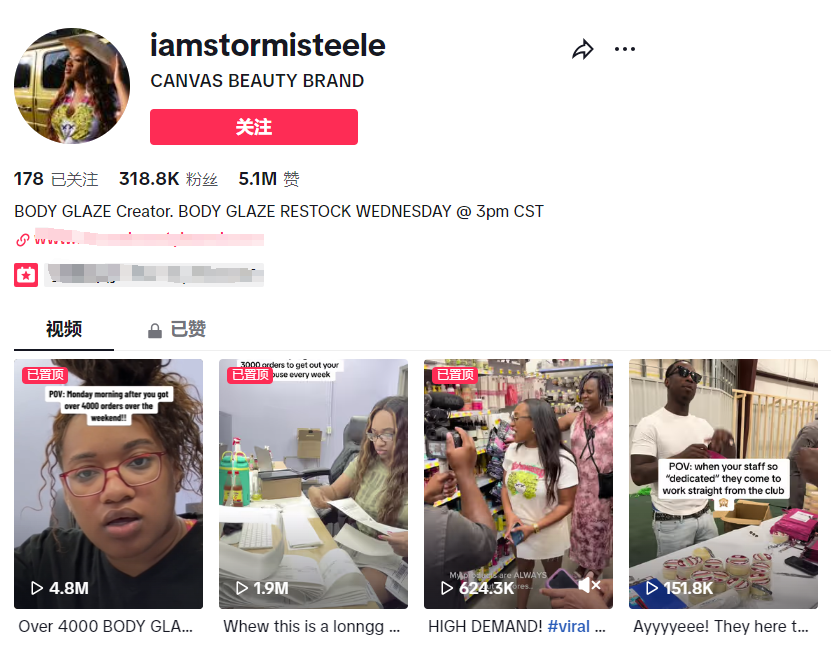 但是不同的是,Canvas Beauty却将品牌官方账号与创始人Stormi的个人TikTok账号融为一体。