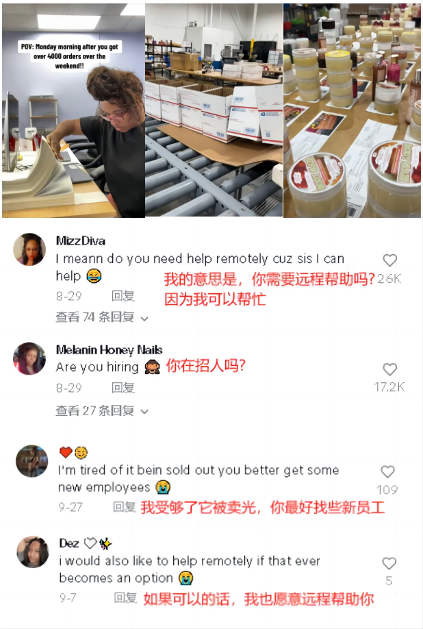 甚至在身体乳Body Glaze销量爆火时,不少网友喊话Stormi多招些员工,还有一部分表示自己愿意远程帮忙。