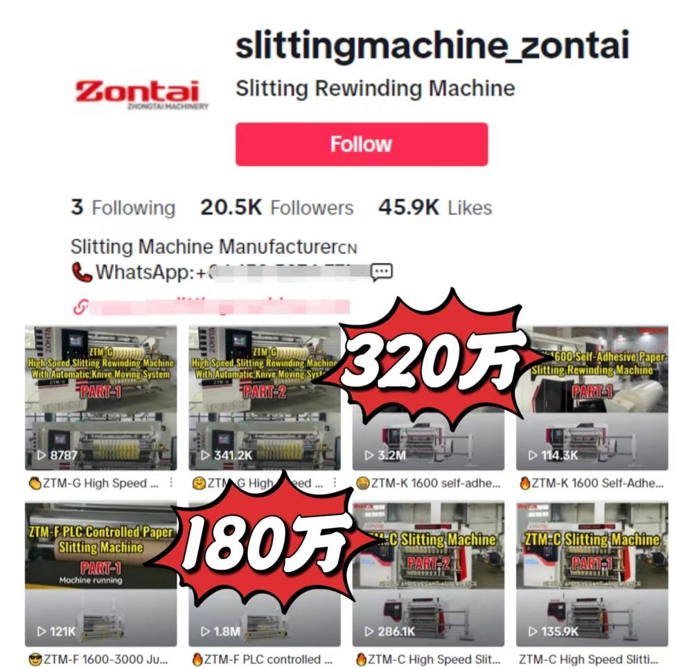 瑞安市莘塍中泰包装机械有限公司主要生产分切机、检品机、合掌机、切段机等全套机械设备,产品远销东欧、北美、南美、东南亚、俄罗斯、非洲、中东等地区和国家。TikTok便是其拓展海外市场的平台之一,借助TikTok掌握的巨大流量,该机械工厂不仅有效地向潜在客户展示了他们产品的优越性能,更加获得了许多询盘与订单,成为了TikTok上小有名气的机械品牌。
