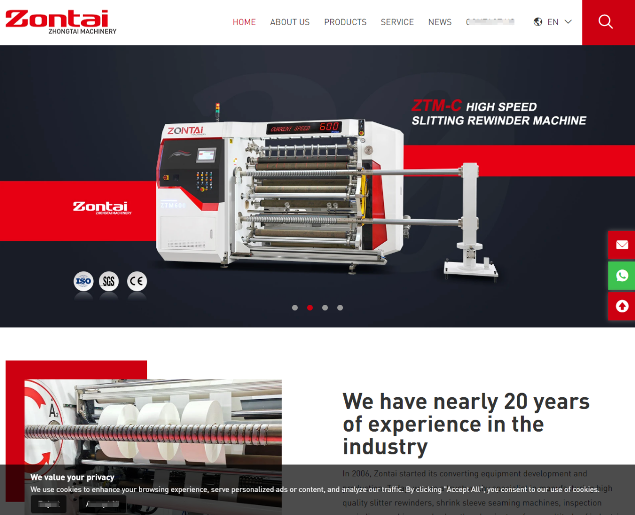 中泰机械工厂海外独立站截图