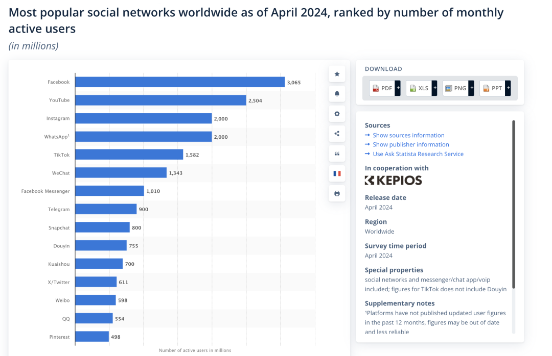 据Statista数据,截至2024年4月,TikTok全球下载量超过49.2亿次,月度活跃用户数超过15.82亿,仅次于Facebook、YouTube、Instagram和WhatsApp。这种庞大的用户基础为品牌提供了广阔的曝光机会。