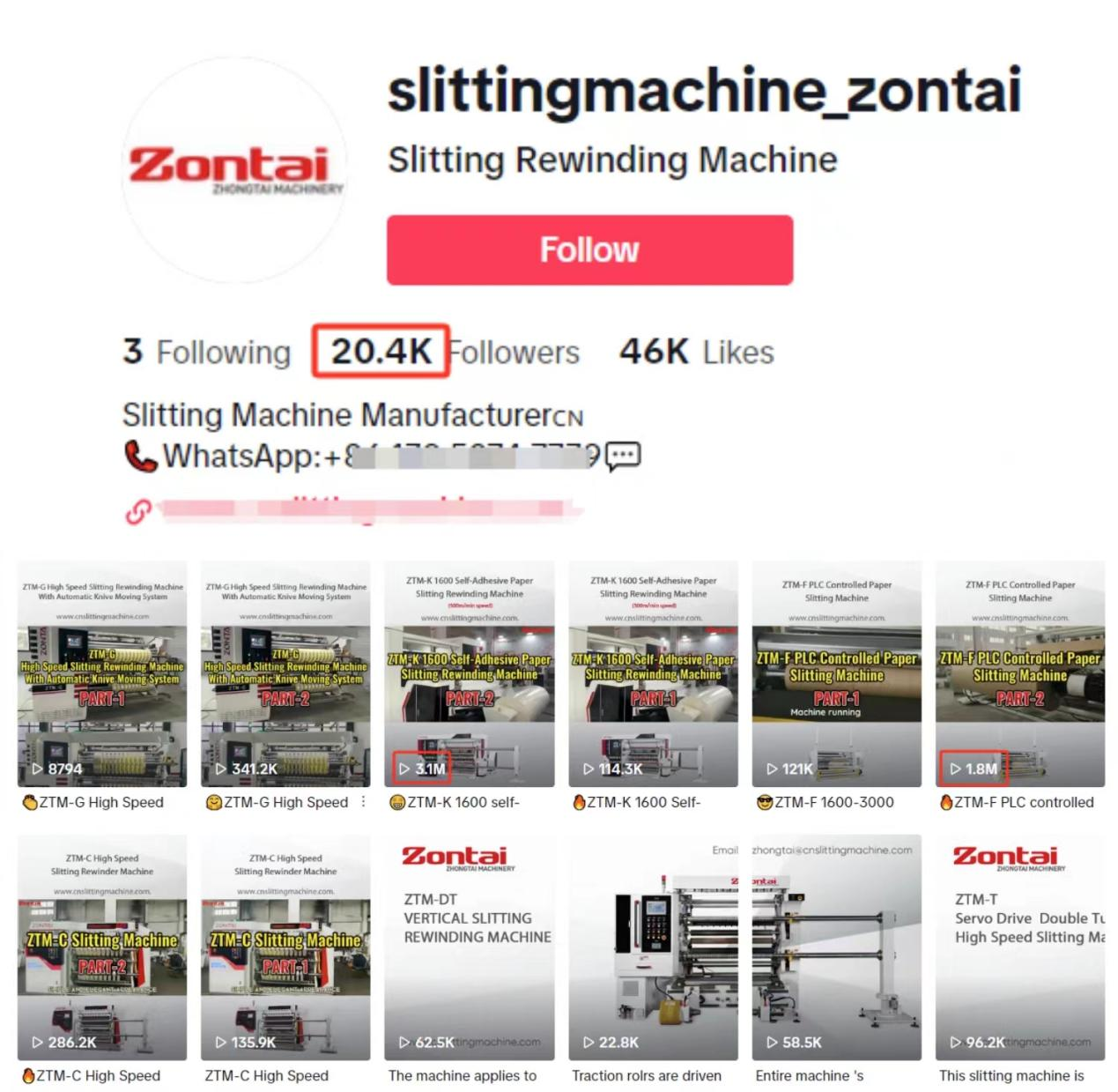 瑞安市莘塍中泰包装机械有限公司,主要生产分切机、检品机、合掌机、切段机等全套机械设备,产品远销海外国家。TikTok便是其拓展海外市场的平台之一,借助TikTok,该机械工厂获得了许多询盘与订单,成为了TikTok上小有名气的机械品牌。目前其TikTok粉丝数2.04万。