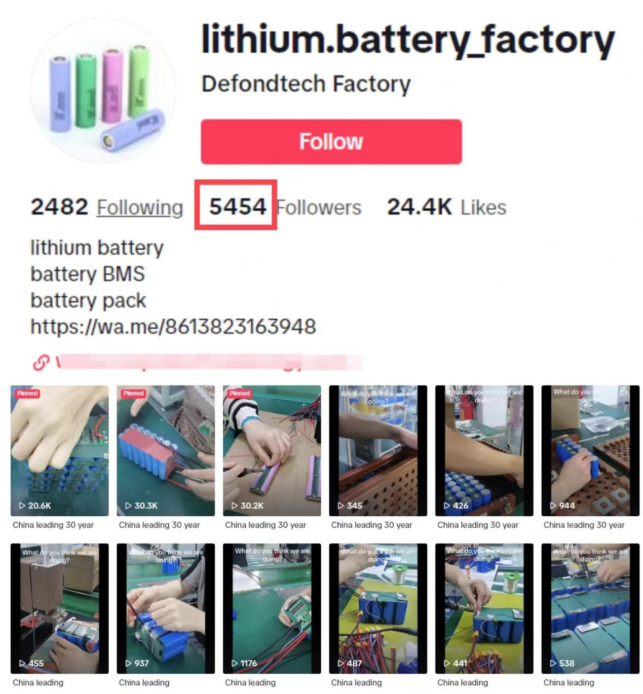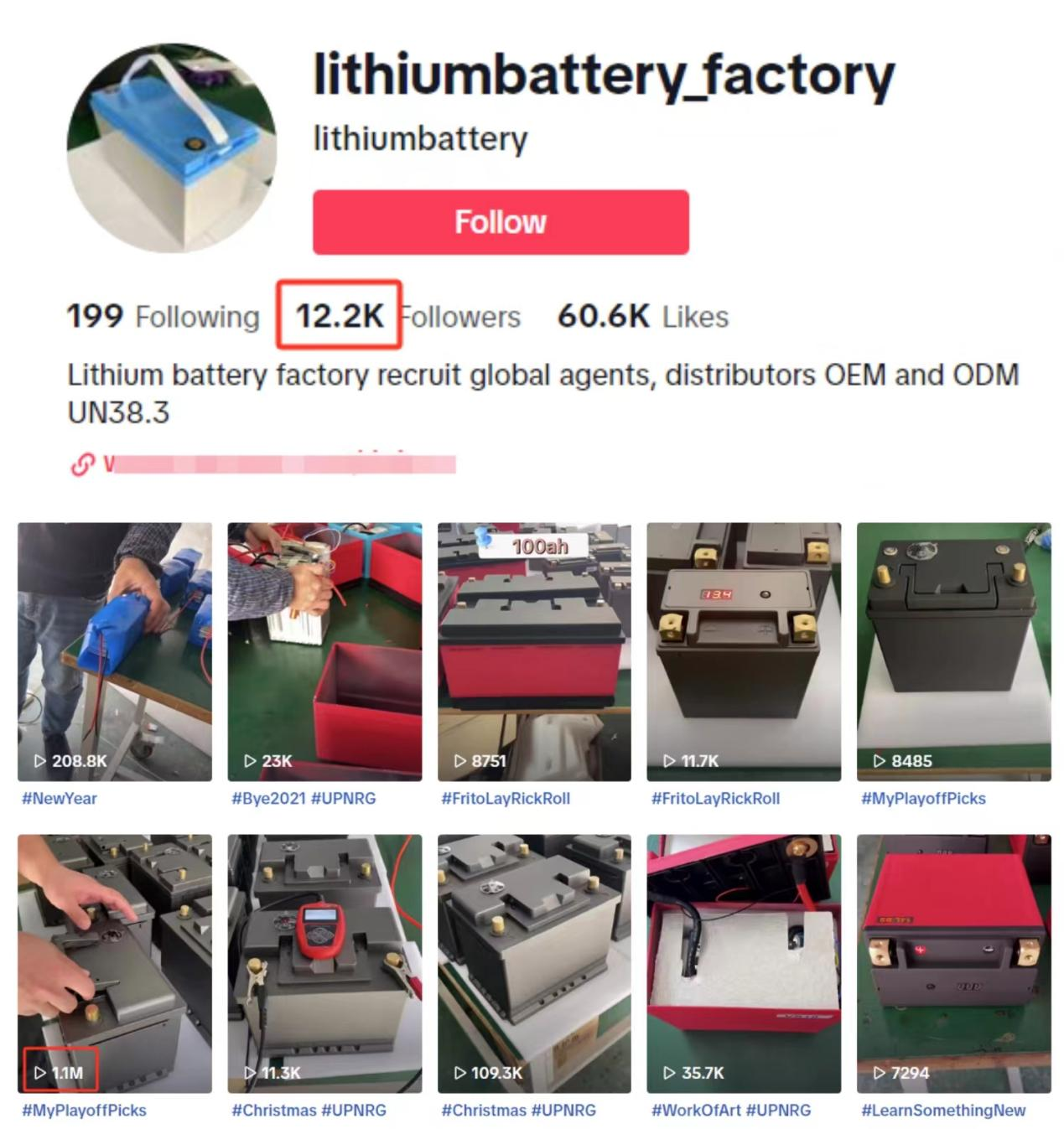 成立于2014年8月的深圳得丰科技有限公司,为长虹三杰新能源有限公司的子公司,是领先的锂离子电池电芯制造商,除了布局国内市场外,也将业务拓展到了海外市场,TikTok便是他们的营销阵地之一。而通过精心运营,得丰电池工厂取得了不错的成绩,目前其TikTok粉丝数5454。