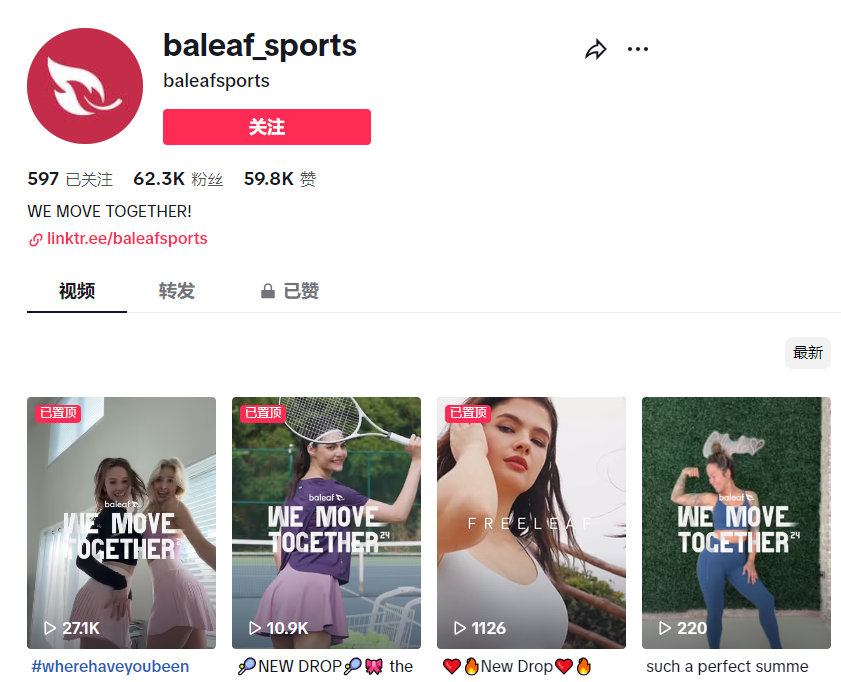 此外,baleaf还发起过运动挑战赛,鼓励用户拍摄自己穿着baleaf产品进行运动的短视频,并在视频中打上特定的标签。