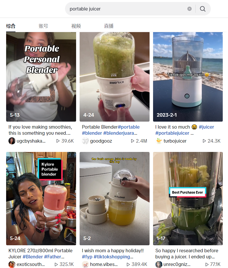 而且在TikTok这样的社交媒体平台上,这种趋势尤为明显,例如一些普普通通分享“便携式榨汁机”的视频,就可以获得上百万的播放量,足以显示出小家电产品在社交媒体上的受欢迎程度。
