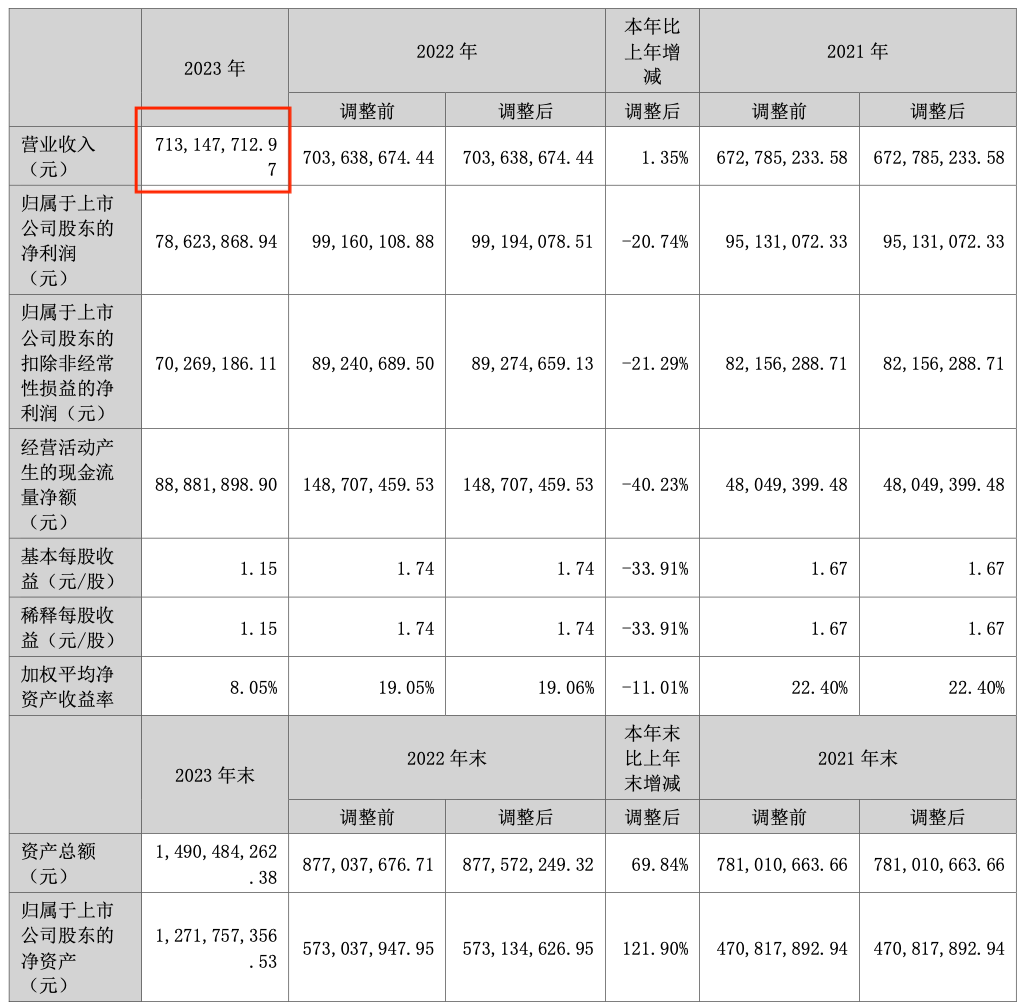 这也才有了标题所说,2023年该公司卖出产品417万件,营业收入超过7亿元。