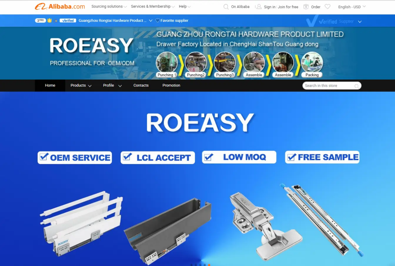 图:荣易家在阿里国际站上的店铺