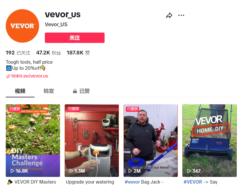 正因为如此,VEVOR非常重视其在TikTok上的业务布局和营销推广,目前已经积累了4.7万粉丝。