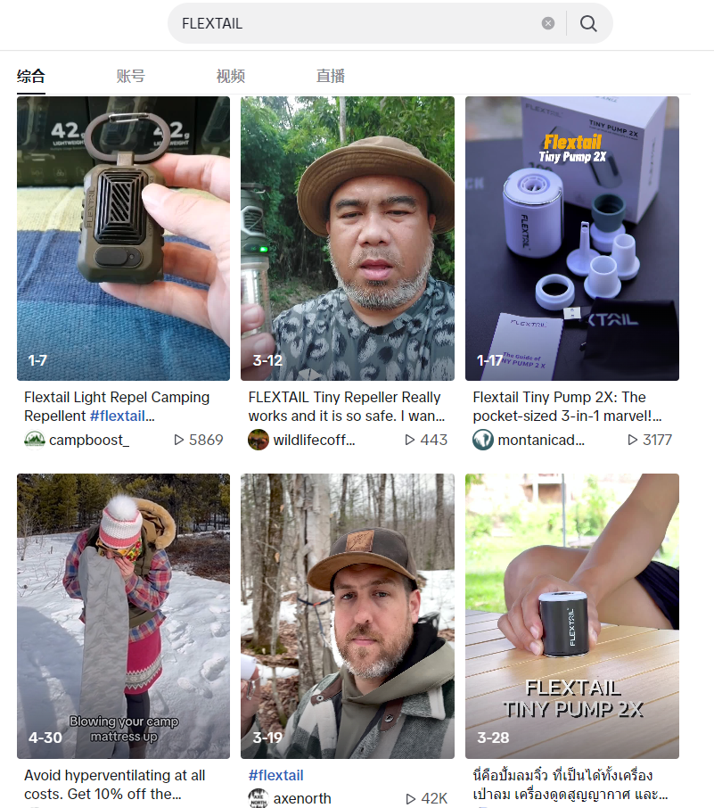 在TikTok平台上,FLEXTAIL鱼尾也取得了显著成效。短视频内容通过展示产品在真实户外场景中的使用效果,吸引了大量关注。