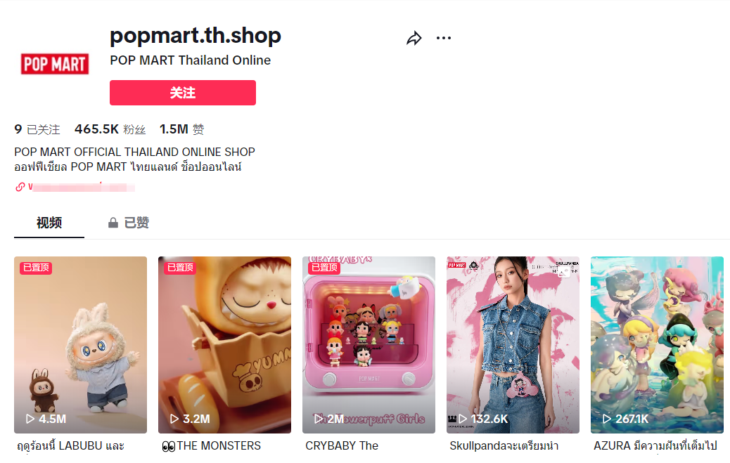 泡泡玛特泰国账号 图源:TikTok