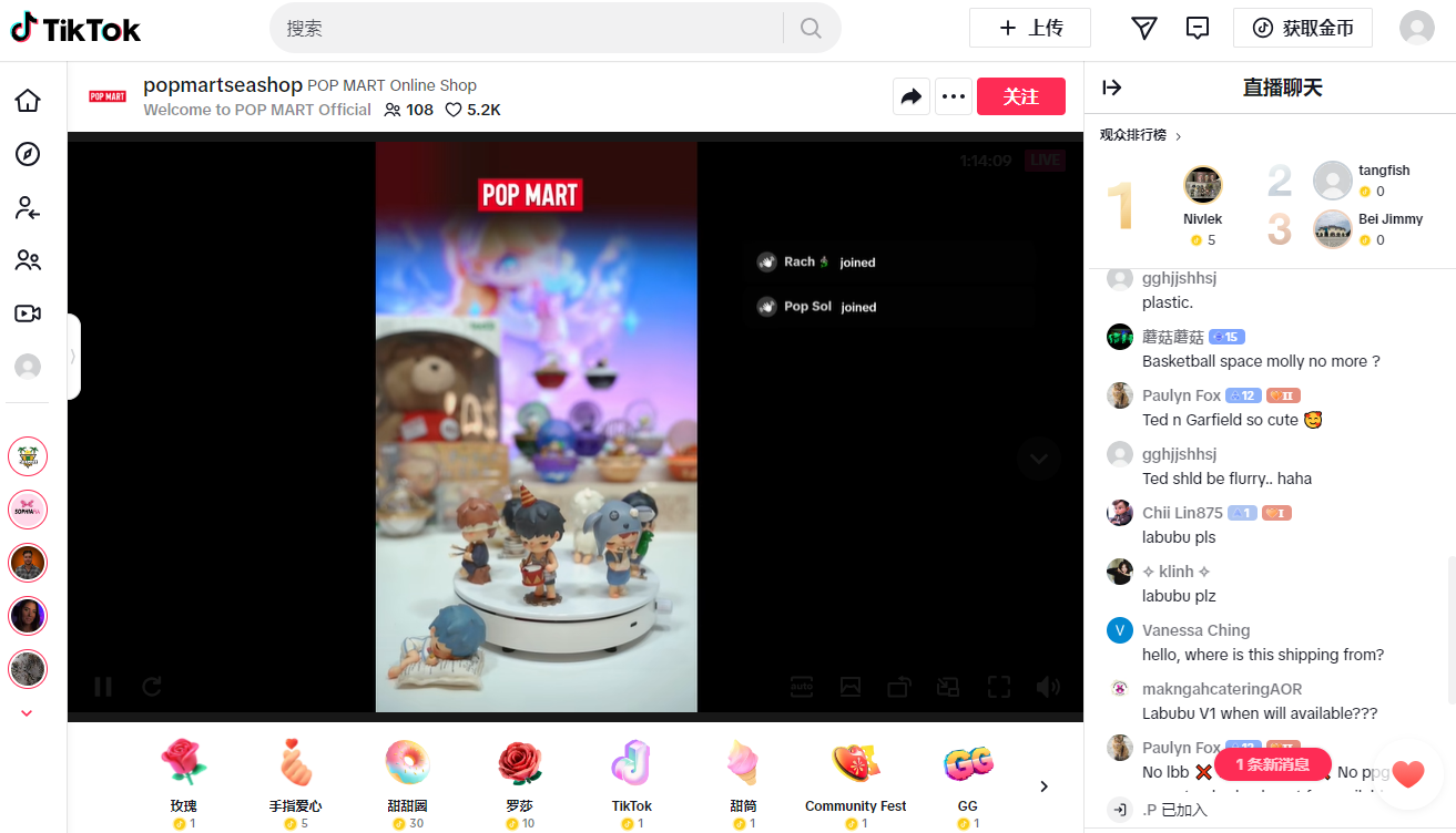 泡泡玛特美国直播间 图源:TikTok