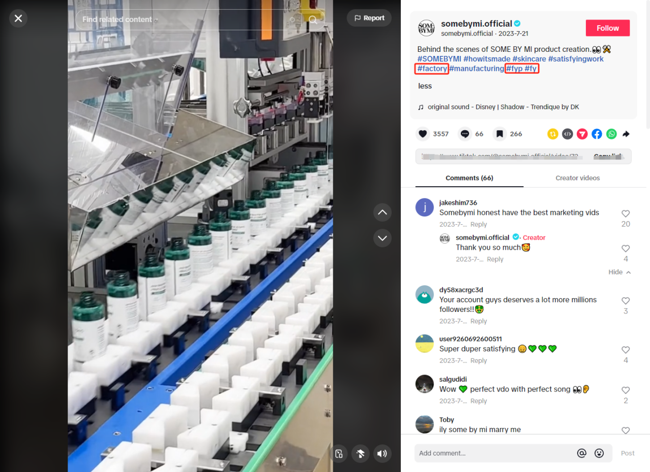 TikTok的内容易于被分享和传播,一旦内容被推荐系统挑选,便有可能快速走红,实现病毒式传播。利用这一点特性,新手企业便可以通过添加热门标签、使用热门歌曲等方式,来提高自身的曝光与影响力。