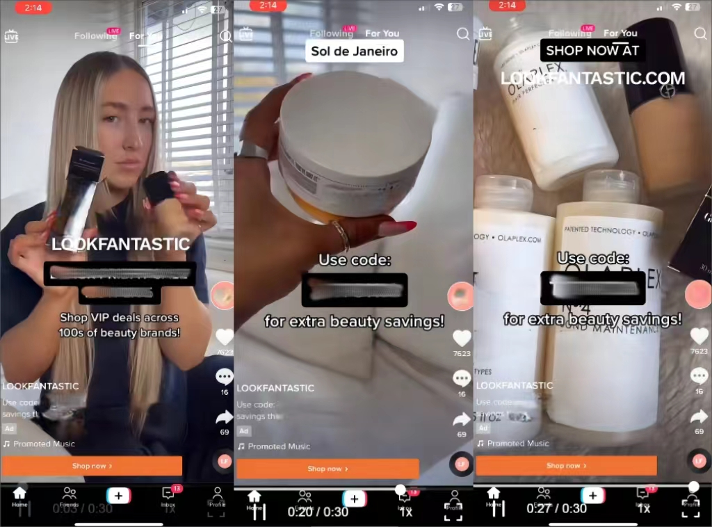 TikTok提供了多种广告形式,如超级首位广告、信息流广告、品牌标签挑战赛等,适合不同的营销目标和预算,增加了营销活动的灵活性。如LOOKFANTASTIC高端护肤美妆品在线商城,在重要购物节Cyber Weekend到来时,为了能够有效扩大市场声量和提高产品销量,便选择了TikTok的多元化产品组合解决方案Smart Bundling进行营销推广,并在黑色星期五进行了24小时的TopView广告投放(超级首位广告)。最终的营销效果远高于预设KPI,TopView表现超过预期6%,互动率比均值高 8.31%,整体覆盖了770万用户,实现了1300万次品牌曝光,订单支付比例则达到了22.16%。