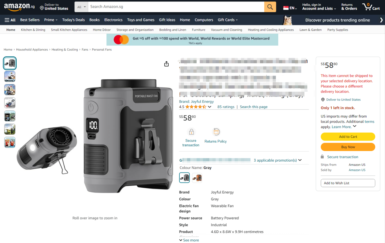某品牌的小电扇在亚马逊上销售