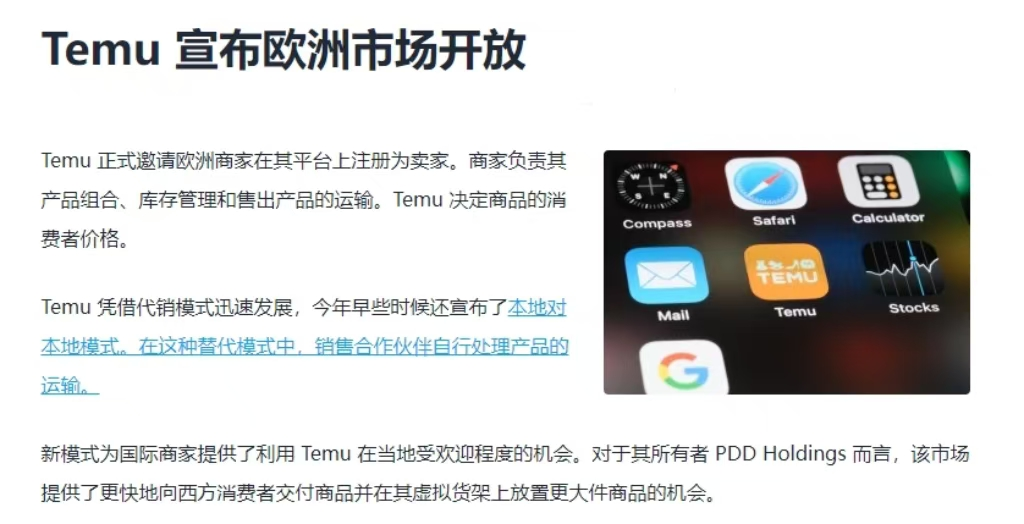 Temu正式宣布向欧洲卖家开放