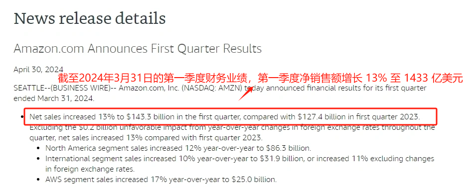图源:亚马逊(Q1销售额达到1433亿美元)