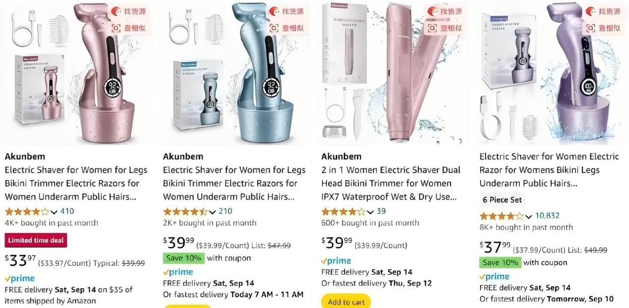 3.冷门赛道造爆款年售千万美金:个护品牌Akunbem旗下,2023年11月上线的女性电动剃须刀,截止今年9月总销量已然高达43.09万,28天里,该品在美妆个护刀类目里销售持续上升,共计售出6.09万件,总销售额达到160.03万美金。