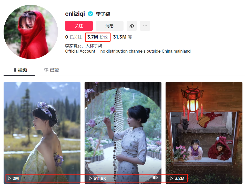 李子柒TikTok账号情况