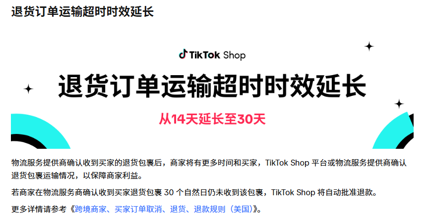今年,TikTok Shop对退货政策做出了几项关键性的调整,尤其是在退货期、退货物流和退款审核等方面进行了优化。这些变化不仅直接影响消费者的购物体验,也可能对商家的售后流程带来新的挑战和机遇。