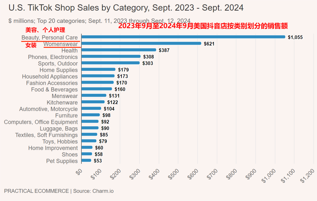 “黑色星期五”期间,TikTok Shop表现尤为突出,销售额超过1亿美元,同比翻倍增长。当日超过30,000场直播活动成为平台的亮点,大量消费者通过实时互动完成购买,展示了社交电商的独特魅力。在品类方面,“美容及个人护理”成为主导类目,年收入超过10亿美元;其次是“女装”,以6.21亿美元的收入位列第二。这反映了美妆和时尚行业在社交电商领域的领先地位。
