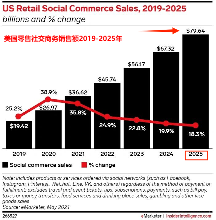展望未来,美国社交电商市场的增长潜力巨大。据eMarketer平台预测,到2025年,社交电商市场规模将达到796.4亿美元,较2021年几乎翻倍。同时,消费者的年均支出预计从2023年的约350美元增长至737美元,反映出用户对社交电商模式的接受程度越来越高。