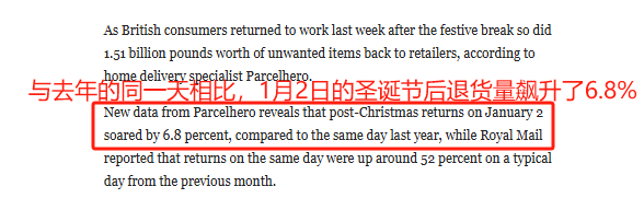 退货现象并不是新鲜事,但圣诞节后的退货量集中爆发,确实给零售商带来了不小的压力。英国快递服务公司Parcelhero透露,1月2日成为退货高峰,仅这一天的退货包裹数量就比去年同期增长6.8%。