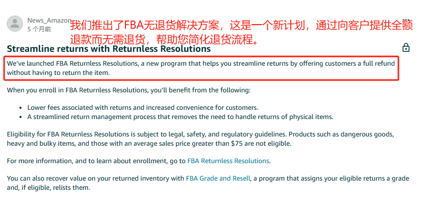 亚马逊FBA提供仅退款服务 图源:Amazon Seller Central