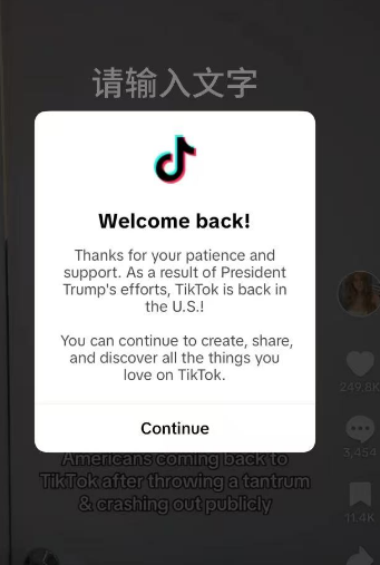 随后TikTok在恢复运营的第一时间发布了一份声明,声明中感谢美国候任总统特朗普向TikTok的互联网服务提供商做出了必要的澄清和保证,使其不会为协助维护TikTok正常运转而遭受处罚。