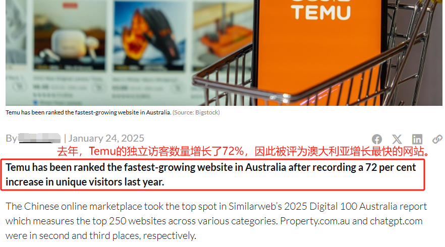 Temu在澳大利亚增长迅速 图源:insideretail