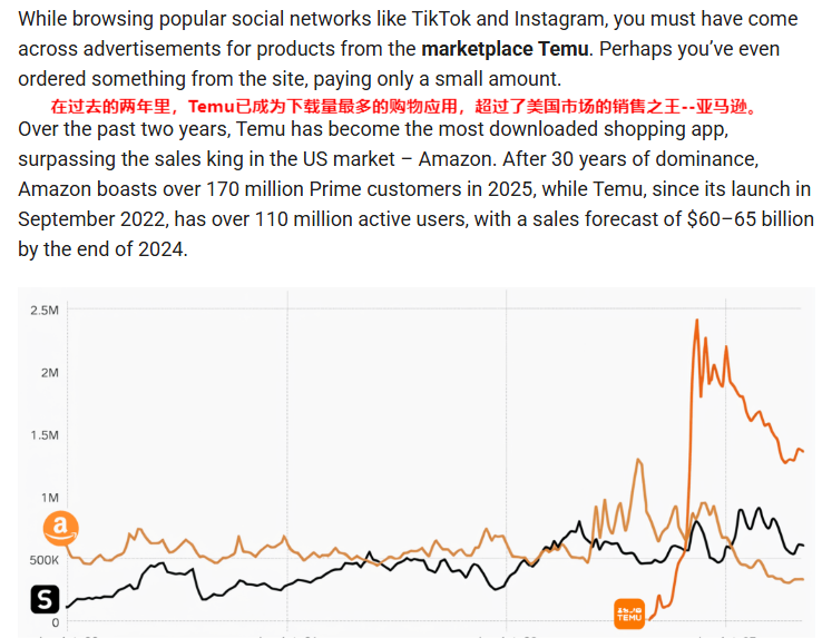 近年来,Temu、SHEIN、TikTok Shop等平台以低价策略迅速抢占市场。例如,Temu通过全托管模式将商品价格压到极低,2024年其美国月活用户数甚至一度超越亚马逊。尽管亚马逊推出低价商城“Amazon Haul”应战,但用户认知度和使用率仍不及预期(仅8%消费者曾购买)。