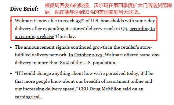 沃尔玛当日达服务覆盖范围上升 图源:retail dive