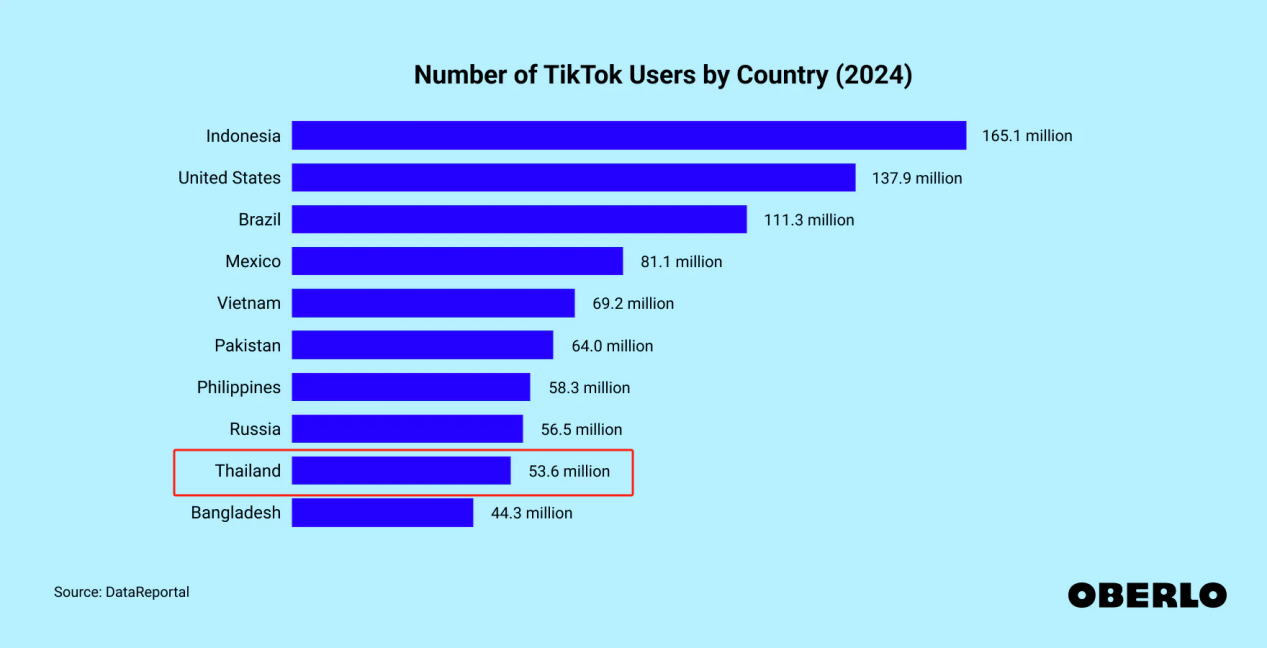 TikTok泰国用户已超5000万 图源:Oberlo